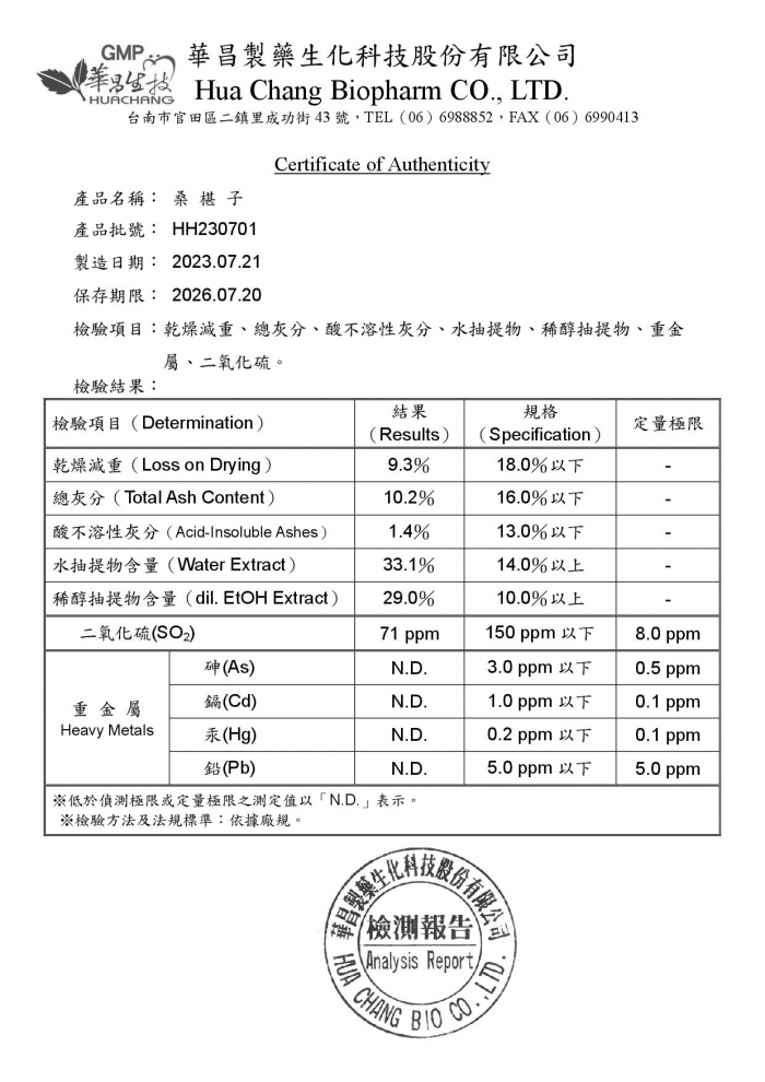 產品檢驗報告--桑椹子HH230701